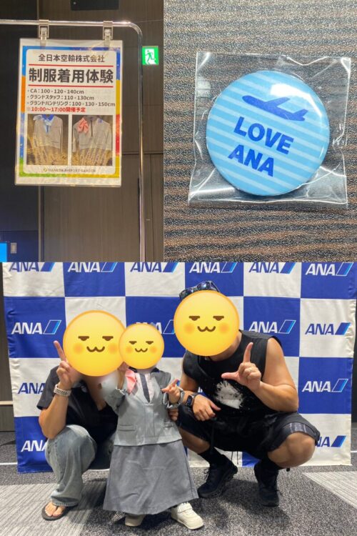 私たちはANA制服を体験。13:20に並び始めて、撮影できたのは13:50ごろ。約30分待ちでした。