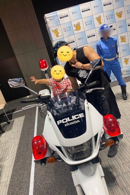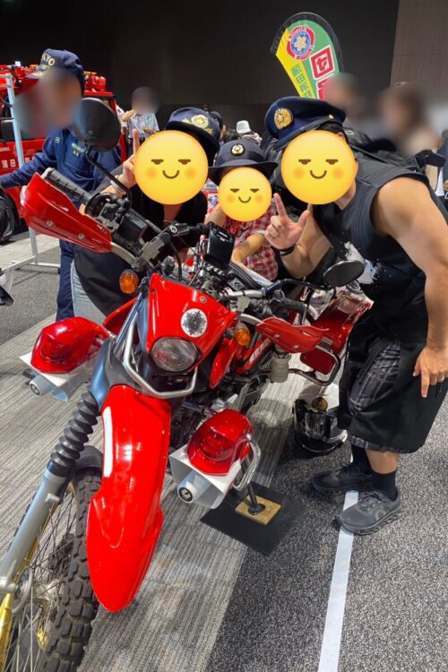 一方で室内展示のパトカーや白バイ、消防活動二輪車は、5分ほど待てば撮影・乗車可能でした。