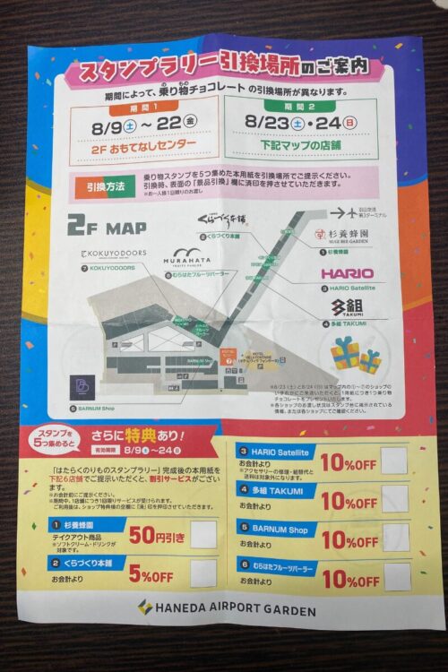 2Fおもてなしセンター前で台紙をもらい、1Fと2Fにある全5か所を回ります。