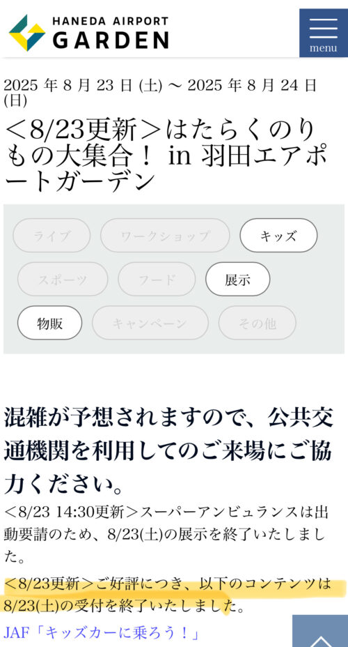 【速報】羽田エアポートガーデン「はたらくのりもの大集合」初日レポ|混雑・待ち時間・子連れ目線で徹底レビュー