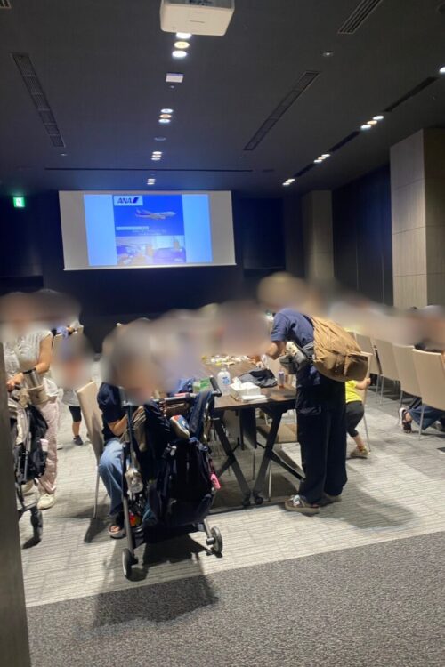 結局、持参した昼食を1Fホール休憩所で食べるのが正解。クーラー・机・椅子完備でベビーカーごと入れるので快適!ここが昼食スポットとして一番おすすめです。