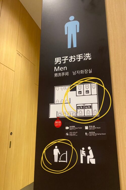 • 2F男性トイレには着替え台付き個室が! → パパに任せて交換してもらえたので助かりました。